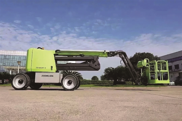 ZA18JERT-V电动曲臂式高空作业平台作为行业内唯一的18米级电动越野曲臂产品,是中联重科融合智能化、电动化等新技术打造的越野式电动车型,作业高度高、幅度广,对作业空间具