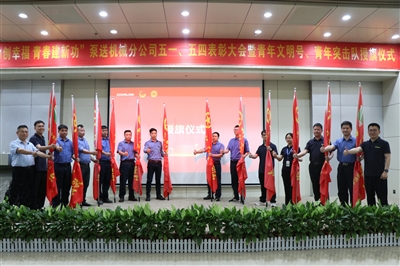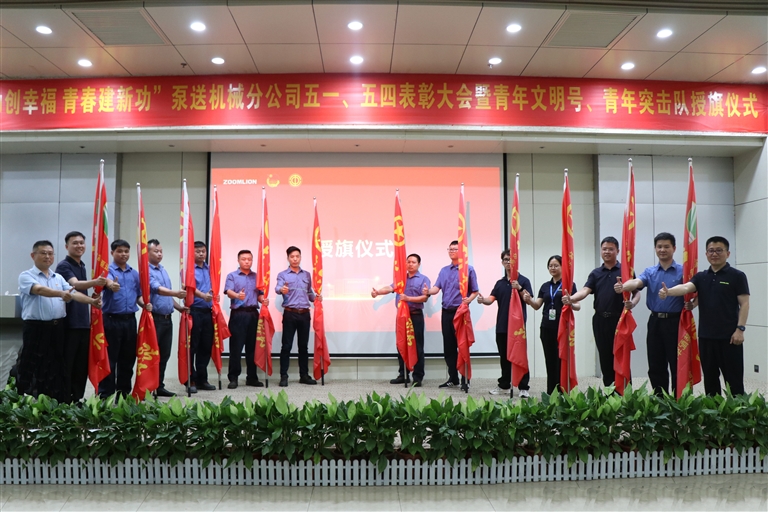 6月13日,泵送机械分公司召开了以“劳动创幸福 青春建新功”为主题的五一、五四表彰大会暨青年文明号、青年突击队授旗仪式。公司团委书记、党群工作部部长万黎君,团委副书记张艳,泵送机械分公司党委书记蔡兵,副总经理高荣芝,工会主席、管理部经理曾小宇,分公司团委书记、管理部党群行政室主任陈立香以及各部门负责人、分公司党委委员、工委委员出席大会并颁奖,分公司团委委员、基层分工会主席、团支部书记以及100余名公司级、分公司级获奖人员参加了会议。