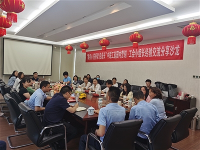 参观结束后,全体工会小组长乘车返回泉塘工业园,开展“践初心、搭桥梁、促成长”工会小组长经验交流会。座谈会上,营销分工会主席刘中华代表分公司营销分工会对营销公司驻外工会小组长的辛勤付出表示衷心感谢,希望大家一如既往保持高度热情,再接再厉,为分工会工作的开展再创佳绩。