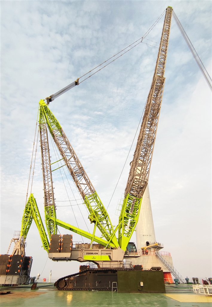 出厂至今,ZCC18000超大吨位履带起重机凭借其过硬的实力及超高的智能化,得到了众多客户的青睐。在浙能嘉兴1号海上风电场,ZCC18000履带式起重机的吊装作业更是刷新了浙江省海上风电单机容量纪录。另外,该产品依靠强劲的技术优势,已在土耳其生物发电厂、大连庄河120米6.0MW风电吊装、江苏南通船厂等大型施工项目吊装中屡建奇功。