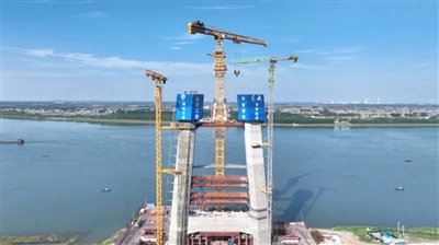 “观音寺长江大桥的桥塔结构复杂,其下塔柱高155米,采用了坚固的钢筋混凝土结构。我们的塔机凭借高性能、高安全、高可靠、高效率的‘四高’优势,将地面绑扎好的钢筋部品精准提升至主塔之上,有效提升了钢筋部品的吊装效率,大幅降低了高空对接的安全风险,确保了吊装施工的质量,助力大桥建设如同搭积木一般快速推进。”建筑起重机械分公司相关负责人介绍说。