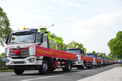 5月31日,中联重科随车起重机海外产品批量发车仪式在汉寿工业园举行。随着“发车”号令响起,28台随车起重机设备启程奔赴沙特和俄语区,将为海外工程建设贡献新的力量。