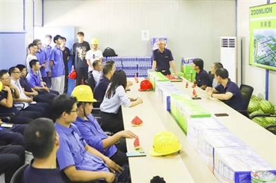 7月18日,正值中联智慧产业城工程起重机园区9.28开园建设冲刺阶段。为鼓舞员工士气,传达公司的关怀,工程起重机分公司党委书记兼工会主席詹立勇、工艺智造研究院副院长刘玮、技术质量党支部书记李颖带队前往中联智慧产业城,开展了“清凉慰问暖人心,凝心聚力鼓干劲”高温慰问活动。