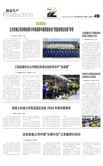 土方机械公司涂装动臂斗杆线喜获中国质量协会“质量信得过班组”称号