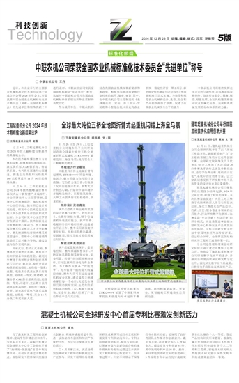 中联农机公司荣获全国农业机械标准化技术委员会“先进单位”称号