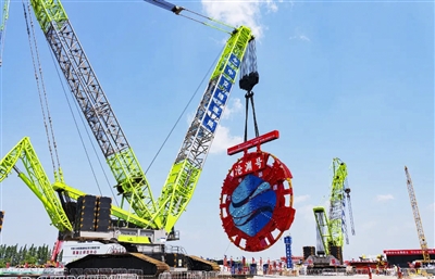 5月11日上午,世界最长的公路水下盾构隧道——海太长江隧道项目迎来重要节点。随着现场总指挥一声令下,重达481.5吨的国内最大直径盾构机“沧渊号”巨型刀盘,由中联重科1600吨履带起重机顺利吊装下井,标志着项目建设取得重大阶段性突破。