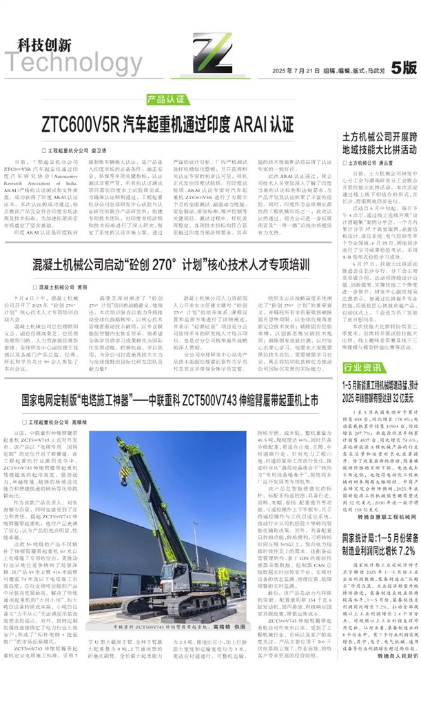 ZTC600V5R汽车起重机通过印度ARAI认证